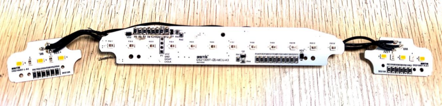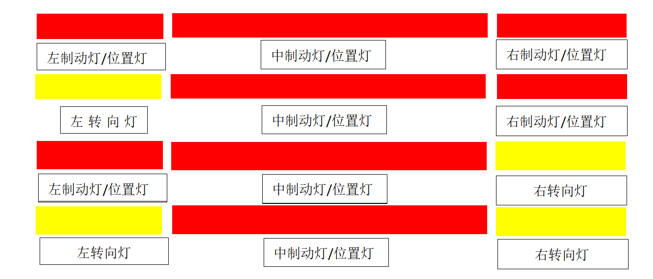 位置灯与制动灯分别分三块,左右位置灯中包含转向灯,由芯片单脚控制输出,左右位置灯、转向灯和制动灯可单独或同时点亮、熄灭。