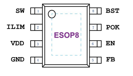 芯片具有短路保护和热关断功能。芯片外部元件少,方便设计。