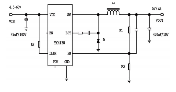TX4138 是一款宽电压开关降压型DC-DC转换器。芯片3A连续输出电流,具有优良的负载和线路调节。