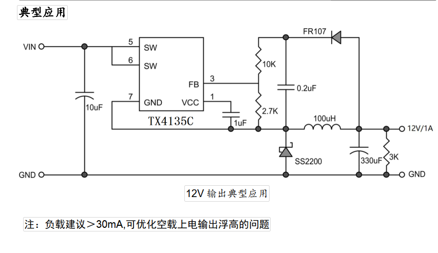 TX4135C具有多种保护功 能, 包括热关机(OTP)、VCC 欠压锁 定(UVLO)、 过载保护(OLP)、短路保 护(SCP)和开 环保护。